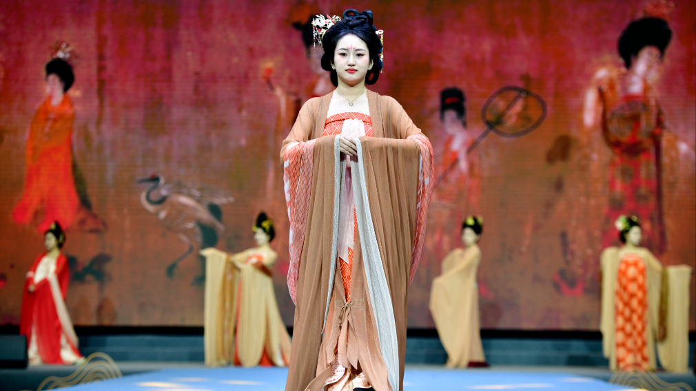 4月10日,模特在曹县汉服2025春夏新品发布会上走秀。新华社记者 郭绪雷 摄