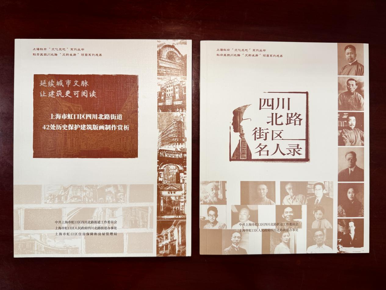 据四川北路街道党群办介绍,为全力推动“文化三地”建设,街道于2023年开始推出四川北路“文韵长廊”系列项目,编辑制作了《上海市虹口区四川北路街道42处历史保护建筑版画制作欣赏》,2024年继续推出了“文化三地”系列丛书《四川北路街区名人录》,2025年发布了《四川北路街道廉洁文化地图》,打造“弄堂可阅读”Citywalk路线。