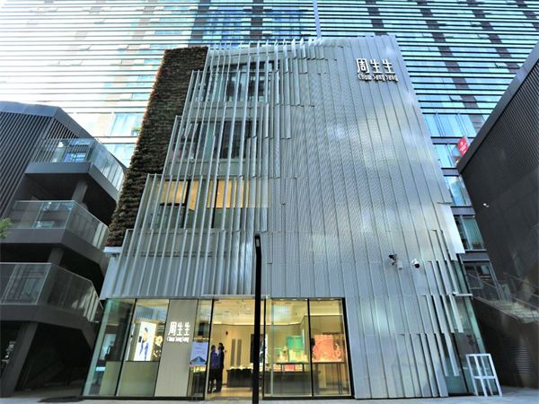 除工业园外,周生生亦积极于门店设计融合可持续发展元素。西安大都荟珠宝旗舰店是集团首家环保概念店,在该店改造过程中,周生生巧妙地重用了原有的外墙铝板,通过扭转安装的方式,不仅节省了材料费用,还使外墙从不同角度呈现出灵动的效果,同时引入了更多自然光线,减少了日常照明耗电。店铺外墙植被随四季变换颜色,宛如一幅天然的画卷,为建筑增添了生机与活力。此外,旗舰店的垂直绿墙选用本地非入侵植物品种,不仅美观,还能吸收挥发性有机化合物,改善空气质量,实现了人与建筑、自然的和谐共生。