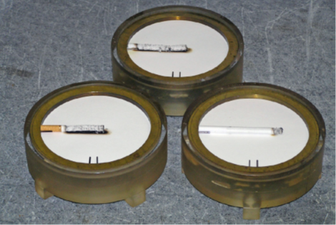 2002年,美国材料与试验协会发布标准《卷烟引燃强度标准试验方法》(E2187),提出了卷烟持续燃烧能力的试验判定方法。试验中,将卷烟点燃后先使其稳定燃烧15毫米,再平放到10张叠放的滤纸上,测量其继续燃烧的长度。