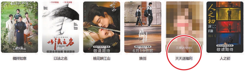 在一家影视盗版网站的“热榜”上,除了新播出剧集之外,还有《哪吒之魔童闹海》《猎金游戏》《唐探1900》《碟中谍8:最终清算》等今年上映的热门电影,以及在播的综艺和动漫等不同品类影视项目,个别项目点开后播放页面显示“视频广告位,正在招商中”。在该网站“相关推荐”栏,记者发现众多影视剧海报中有一个名为“天天送福利,注册送8888”的选项,并配以穿着暴露女性图片,点击该选项,页面弹出了一家境外博彩网站。记者看到,网站中有“百家乐”等各式博彩游戏项目并设有“官方充值收银台”。
