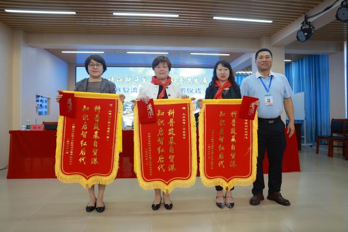 在与会领导的见证下,赠受双方代表共同签署捐赠协议。上海市眼病防治中心向学校捐赠了“眼健康流动科普馆”展品、科普书籍及学习用品。红色娘子军连红军小学副校长张家宝作为受赠方代表,向捐赠方代表颁发捐赠证书并递赠感谢锦旗。随后,中国科协荣誉委员、中国自然科学博物馆学会名誉理事长程东红,海南省科协党组书记、副主席许振凌,上海科普教育发展基金会常务副理事长王小明,琼海市人民政府副市长赵锦,上海市眼病防治中心党委书记、执行院长高玮,红色娘子军连红军小学校长李锋共同为科普基地揭牌。这不仅凝聚了沪琼两地同心共筑明眸未来的深厚情谊,更标志着沪琼两地眼健康合作迈出新步伐。