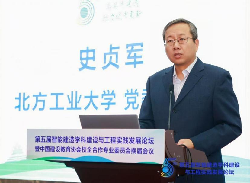 北方工业大学党委副书记史贞军代表承办方致辞,他介绍了学校在智能建造、数字建造、韧性城市等领域的学科布局和科研成果,表示本届论坛的举办是北方工业大学服务国家战略、深化产学研合作的重要体现,将为行业创新发展提供新动力。他诚邀各界嘉宾于2026年北方工业大学建校80周年之际莅临学校高质量发展论坛,共话智能建造与未来城市发展新篇章。