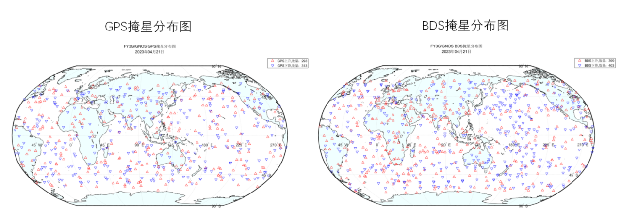 GNOS-II接收的GPS和北斗(BDS)两个导航系统的掩星分布图 来源:国家卫星气象中心