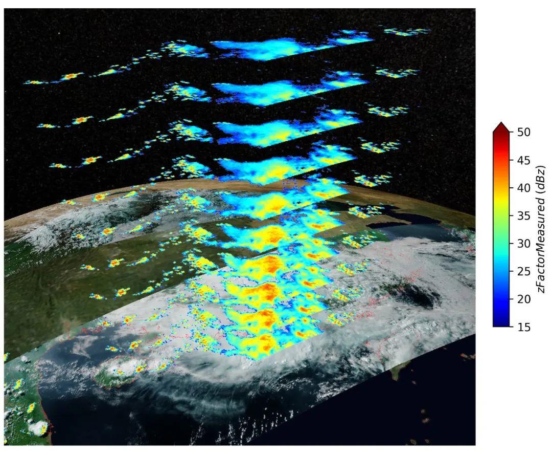 降水测量雷达是风云三号G星上的主载荷,也是国内首台星载降水测量雷达,主要用于灾害性天气系统的降水监测。它采用了Ku+Ka双波段,可清晰观测台风、暴雨、暴雪等降水系统的内部三维立体结构。