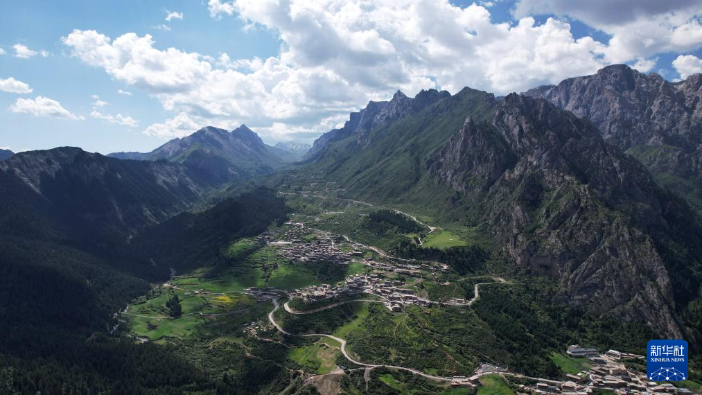 夏日里的扎尕那景色(7月11日摄,无人机照片)。新华社记者 陈斌 摄