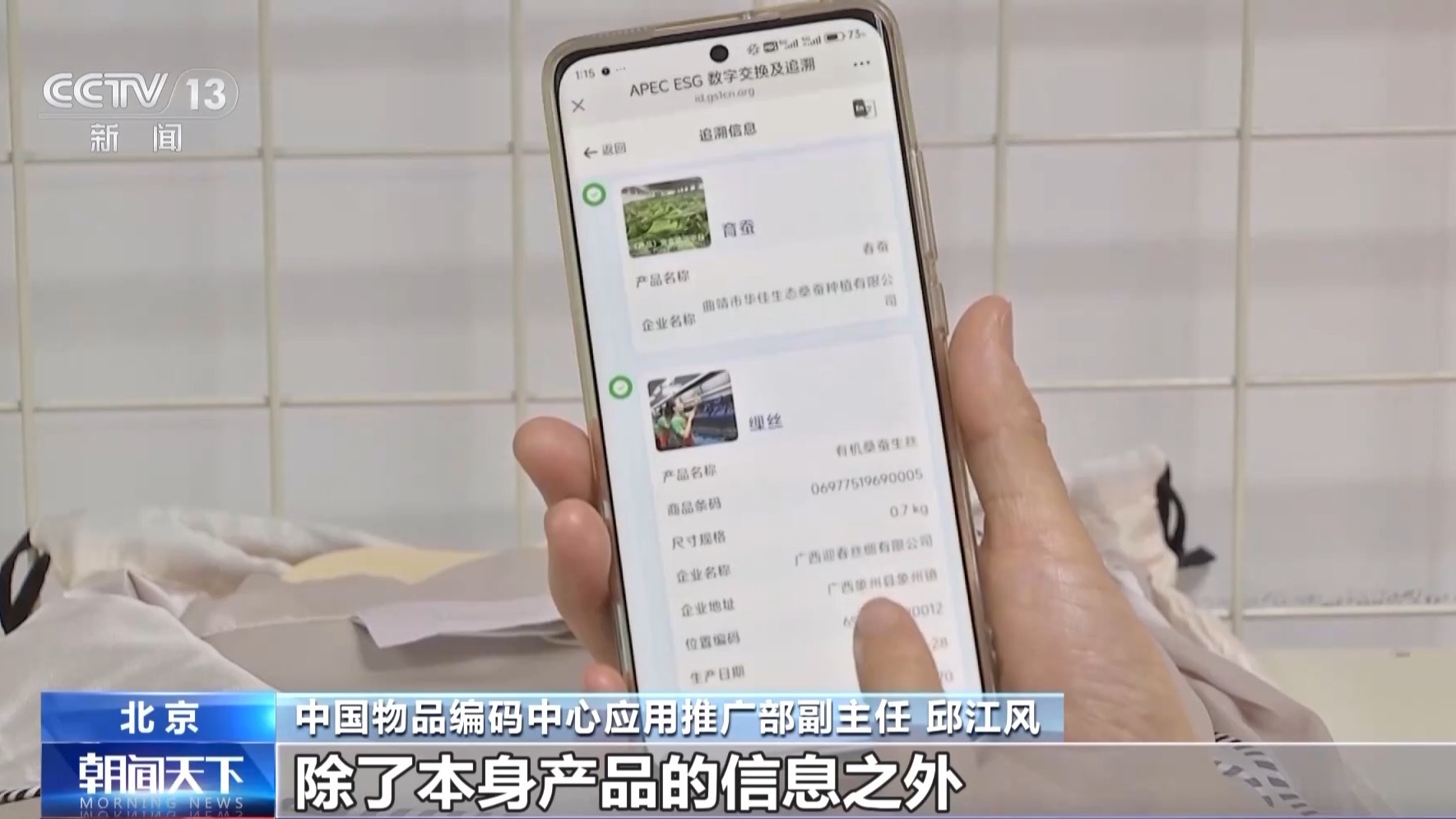中国物品编码中心总工程师李建辉:通过扫标准二维码,可以获得产品的原产国,以及进出口的报关单号等全链路的溯源信息,也可以展示多种的语言标签,有利于增强企业的竞争力,还可以让消费者获得更多产品信息。也让全球的消费者对中国产品信得过,更放心。