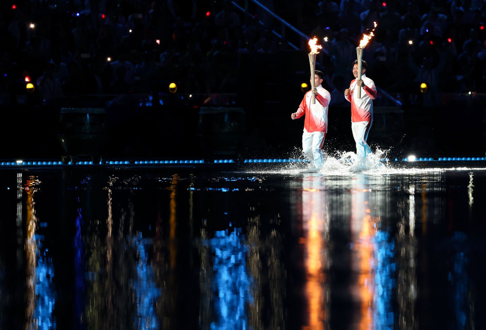 主火炬点燃后。新华社记者胡虎虎 摄