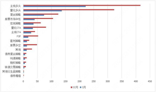 2026年1月全市场备案端产品策略统计与环比变化 数据来源:私募排排网