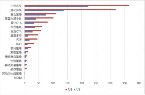 2026年2月全市场备案端产品策略统计与环比变化 数据来源:私募排排网