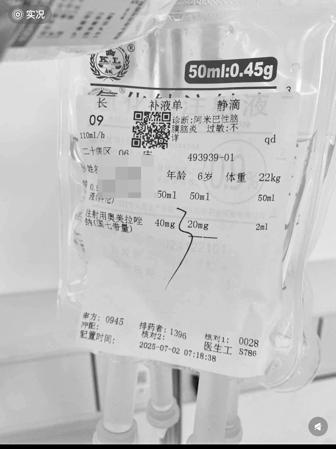 这名宝妈介绍,自己的孩子今年6岁,6月17日忽然发烧,本以为是前一天打水仗着凉了,当天进行了物理降温,第二天去了合肥市第二人民医院检查,6月19日去了市妇幼检查,6月20日又去了小诊所检查,都说是病毒感染。直到6月27日转院至上海复旦大学附属医院,6月30日通过腰穿脑脊液的检查,确诊是感染了狒狒阿米巴虫。这名孩子的情况引来全网关注。