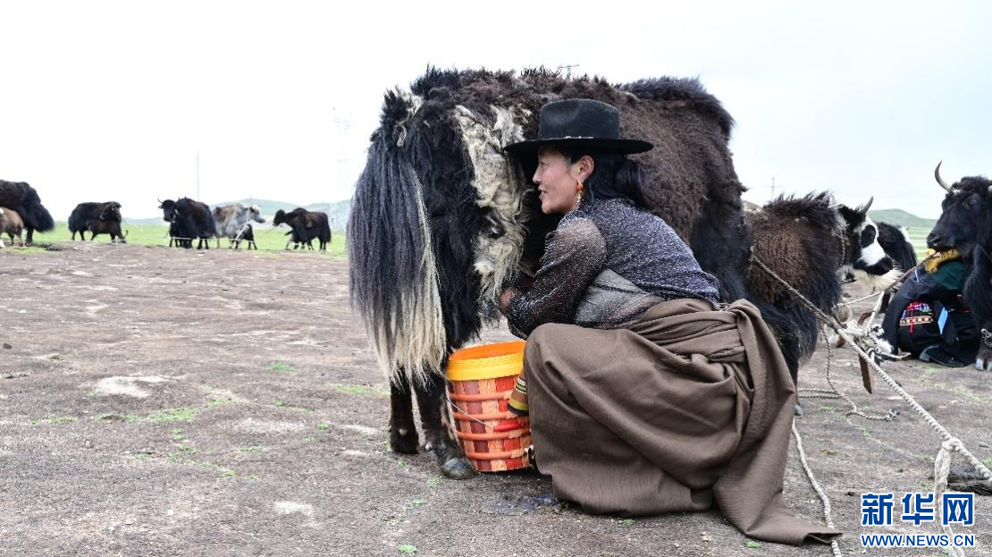 曲果仁毛村村民在挤牛奶(6月30日摄)。新华网发 刘蒙青 摄