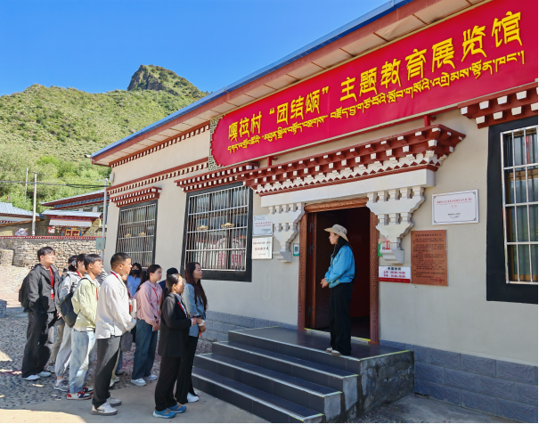 在嘎拉村,实践团师生参观了嘎拉村“团结颂”主题教育展览馆。随后,嘎拉村驻村工作队、嘎拉村党支部成员与学校师生开展了座谈交流。嘎拉村党支部书记边巴为全体师生介绍了嘎拉村的巨大变化。