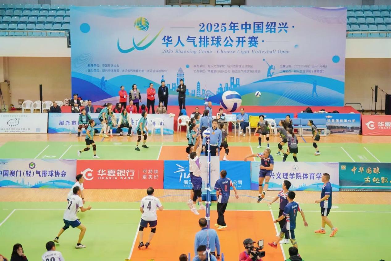 11月1日,由中国排球协会指导,绍兴市体育局、浙江省排球协会主办的2025年中国绍兴・华人气排球公开赛在绍兴文理学院体育馆开赛,来自全球的气排球爱好者以球会友、同场竞技。