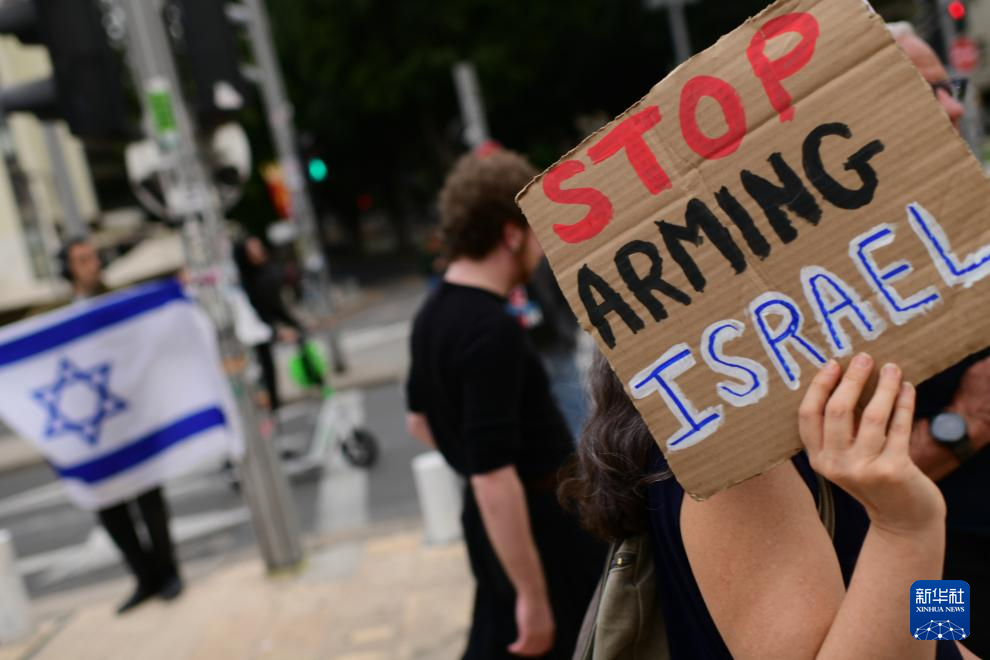 当日,人们在特拉维夫一处广场举行集会,抗议美国和以色列军事打击伊朗,要求美以停止一切战争行为。
