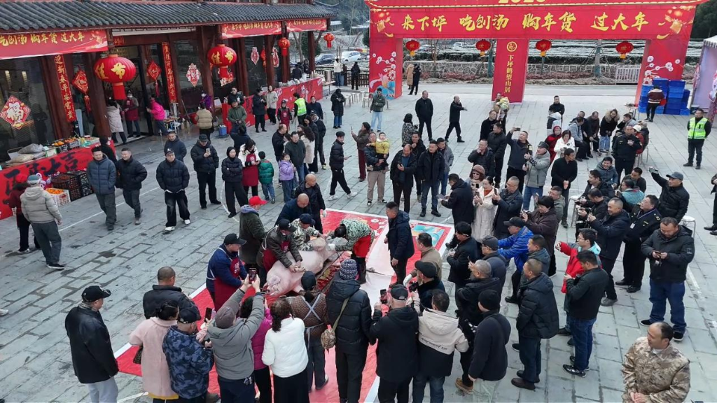 据了解,今年的鹤峰刨汤宴1月10日开席迎客,为期32天,涵盖新鲜果蔬、腊货、特色小吃、非遗文创等30余种本地产品,现场还有杀年猪、摆手舞、柳子戏、打糍粑等民俗体验。
