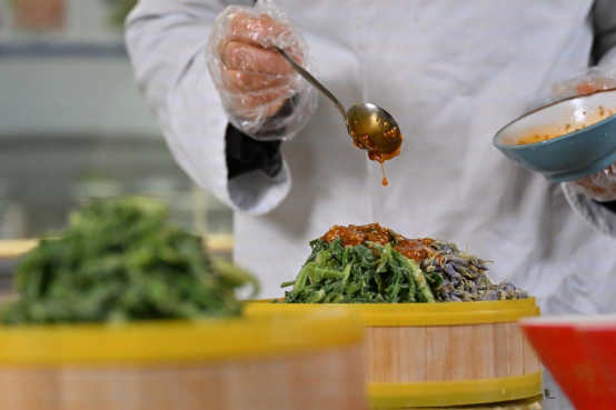 蒸菜是河南传统家常菜肴,以野菜或根茎类蔬菜裹面粉蒸熟,配蒜汁、香醋、小磨香油食用。因低油低盐、营养保留充分,深受当地群众喜爱。据考证,蒸菜技艺可追溯至新石器时代的“甑”,唐宋时期曾作为中原救荒食物,明代《救荒本草》中多有记载。(李恒摄)