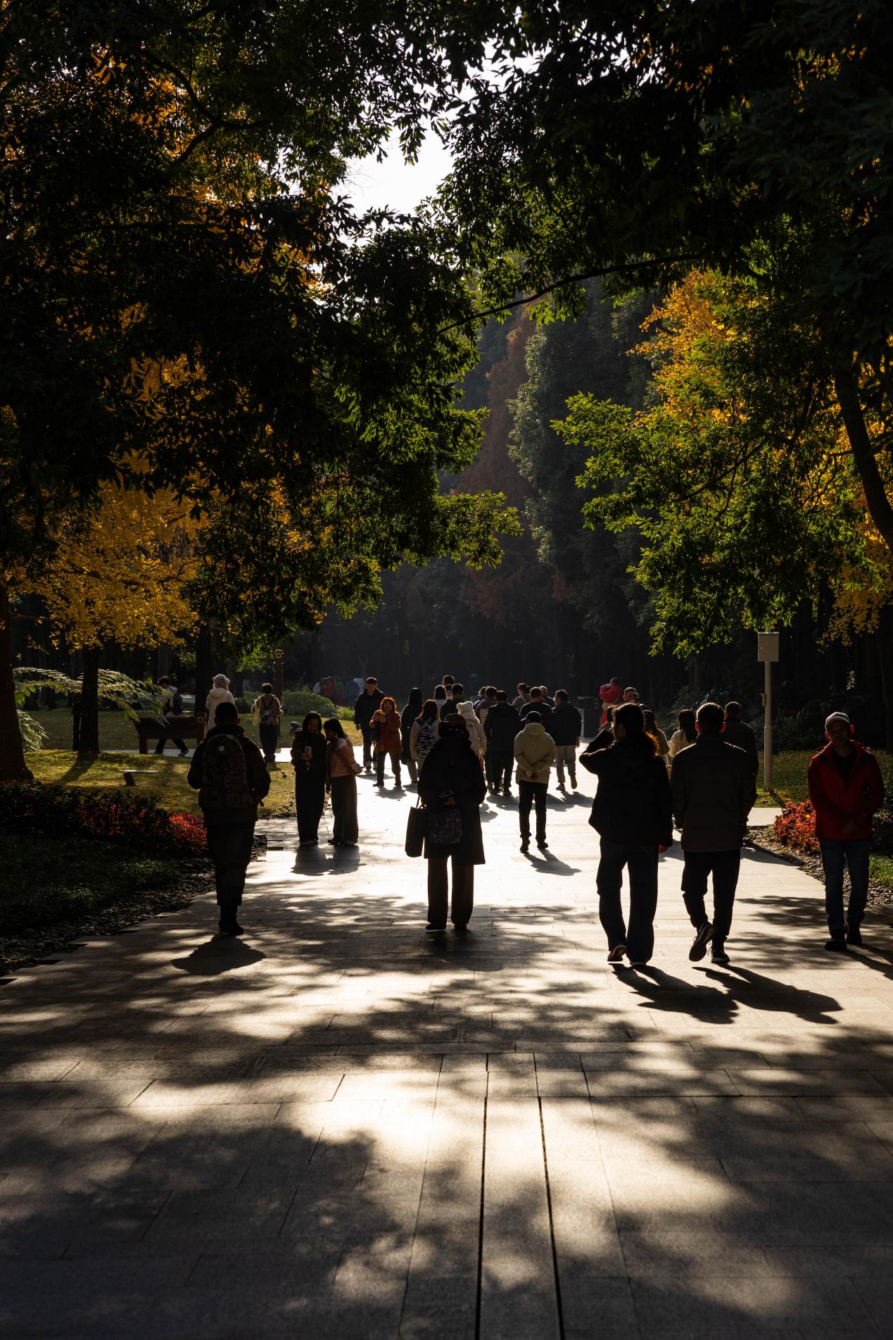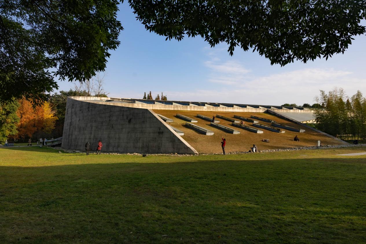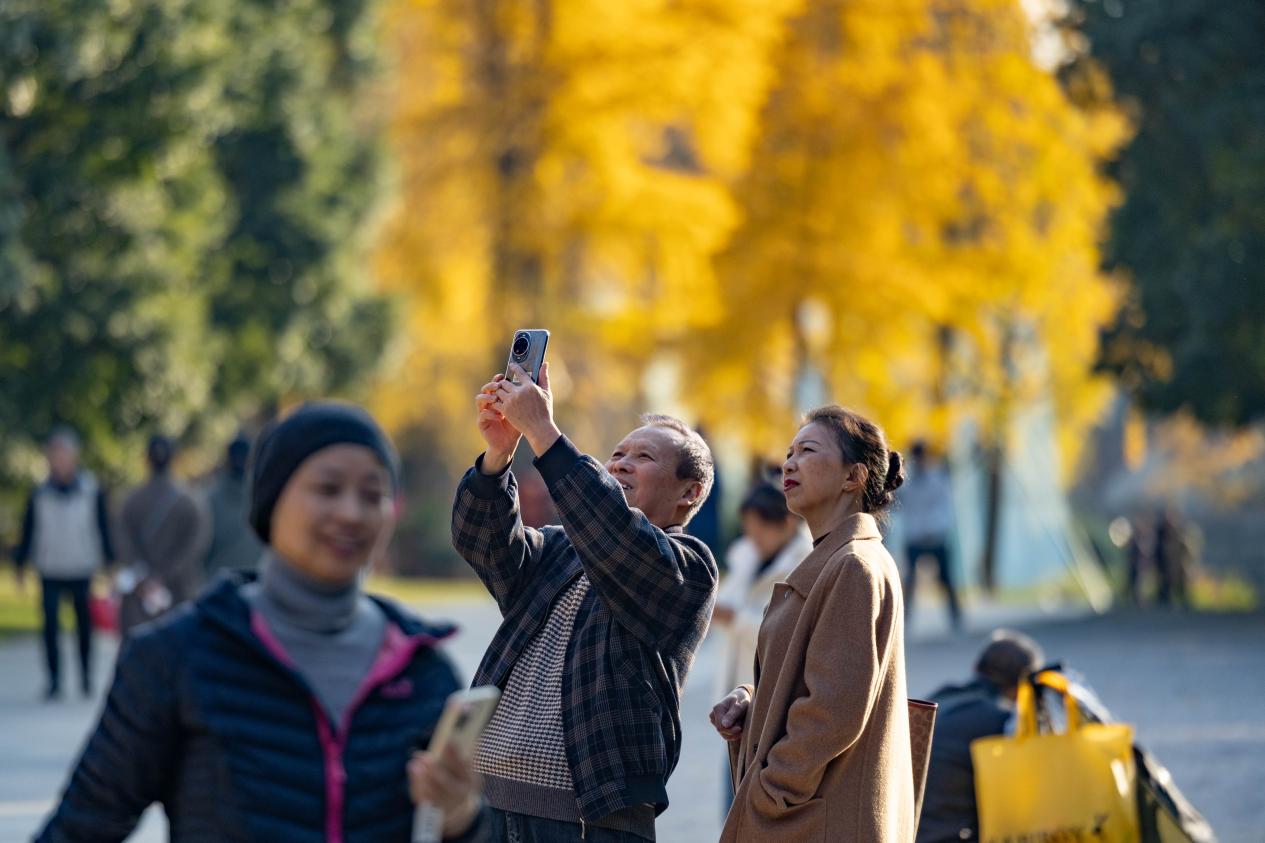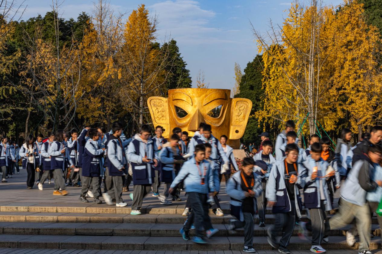 冬日阳光下,市民、游客在金沙遗址博物馆园区内享受暖阳。新华网发(张可凡 摄)