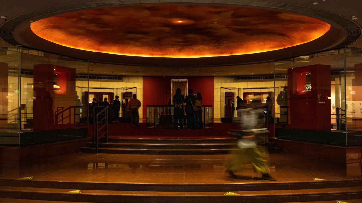 临近闭馆时间,前来参观的市民、游客陆续离开。新华网发(张可凡 摄)