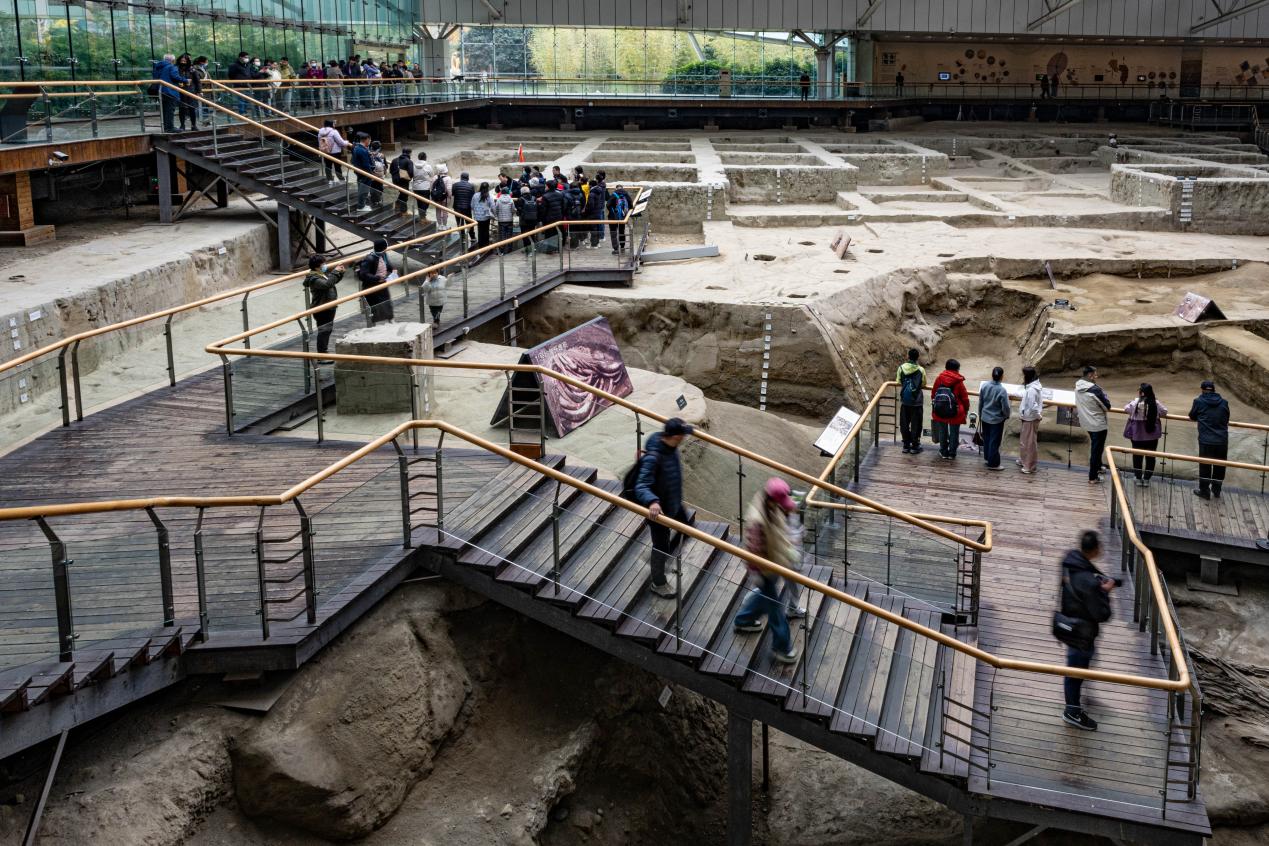 游客在遗迹馆内参观。新华网发(张可凡 摄)