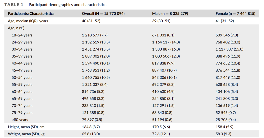一个中国的研究数据(下图)显示,超重和肥胖的总体患病率在不同年龄人群中的趋势会有所不同,基本上也是从 24~29 年龄阶段开始,肥胖率增加;在中年男性(55~59 岁)和老年女性中达到峰值(65~69 岁)。