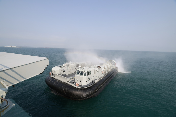 近日,南部战区海军某登陆舰大队“野马”气垫艇奔赴南海某海域,围绕复杂海域舰艇操纵、损害管制、气垫艇进出坞等课目开展专攻精练。该大队紧盯使命任务,深化实战实训,在接连不断的“特情”中有效锤炼两栖作战能力。(米学超、张雪岩、莫会辰、刘森林)