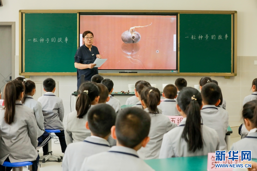 胡晓红在昆明市官渡区金马小学讲课(4月25日摄)。新华网 赵普凡 摄