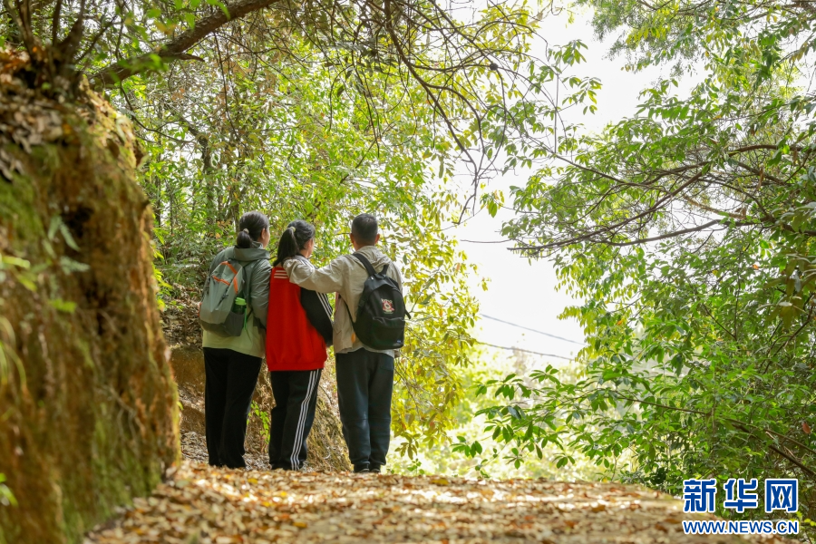 胡晓红一家三口在森林里(4月20日摄)。新华网 赵普凡 摄