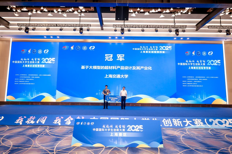 据了解,大赛以“我敢闯、我会创”为主题,上海赛区参赛报名数超过5.6万项,参赛人次超22.9万,最终35所高校的425个项目成功晋级市赛决赛。经过金奖争夺赛、排位赛、冠军争夺赛角逐各赛道的金奖、银奖、铜奖。最终,上海交通大学参赛项目《基于大模型的超材料产品设计及其产业化》脱颖而出,斩获冠军。