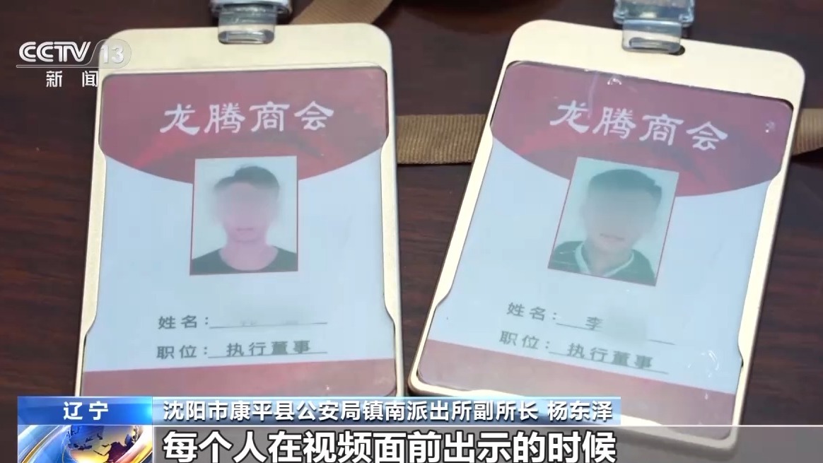 沈阳市康平县公安局镇南派出所副所长 杨东泽:他们做了一个假的龙腾商会的一个胸牌,每个人在视频面前出示的时候都会戴着胸牌,证明他们有这个实力。他们相当于是一个大的财团一样,让老百姓去相信这些东西。