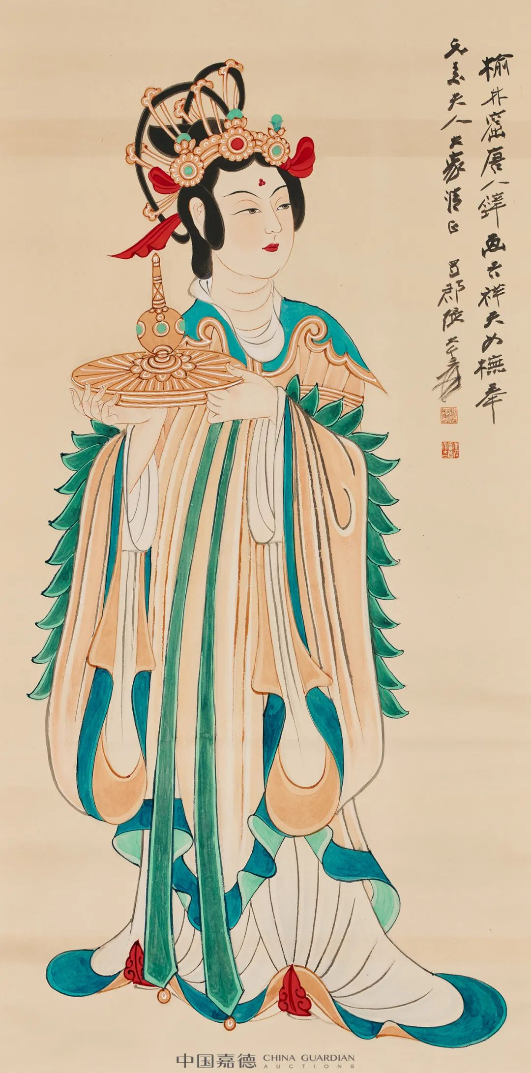 题识:榆林窟唐人壁画吉祥天女。橅奉元素夫人大家请正。蜀郡张大千爰。