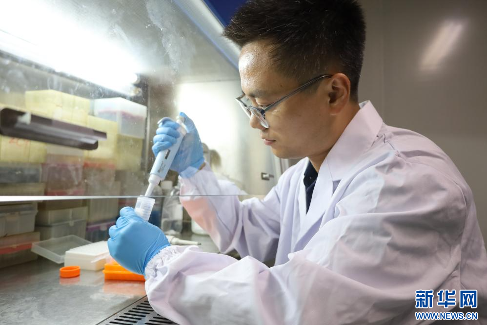 江西农业大学动物科学技术学院青年教师蔡高峰在做实验。新华网 王晓震 摄