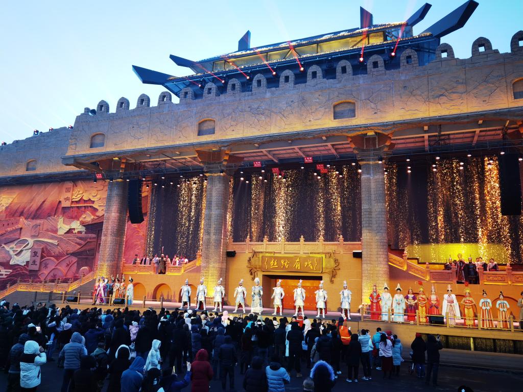 2025年1月1日,乌鲁木齐市“丝路有戏”园区内,游客正在观看演出。新华社记者刘兵 摄