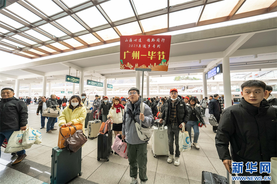 近年来,毕节高铁站每年春节前都会协调从广州南站始发的返乡专列,节后又会发出到达广州南站的务工专列,助力老乡们节后返岗务工。