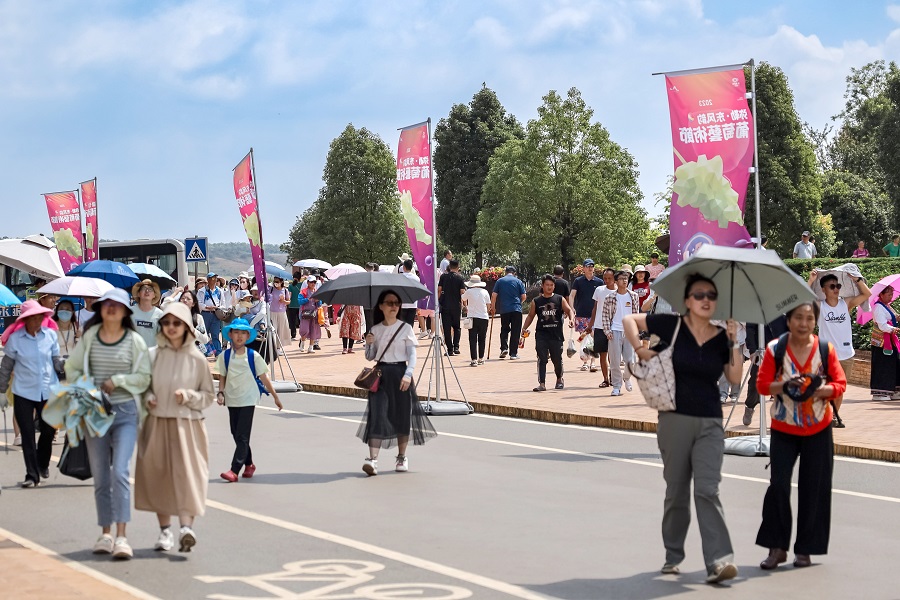 东风韵国际康养旅游度假区2023年葡萄文化节游人如织(资料图)。