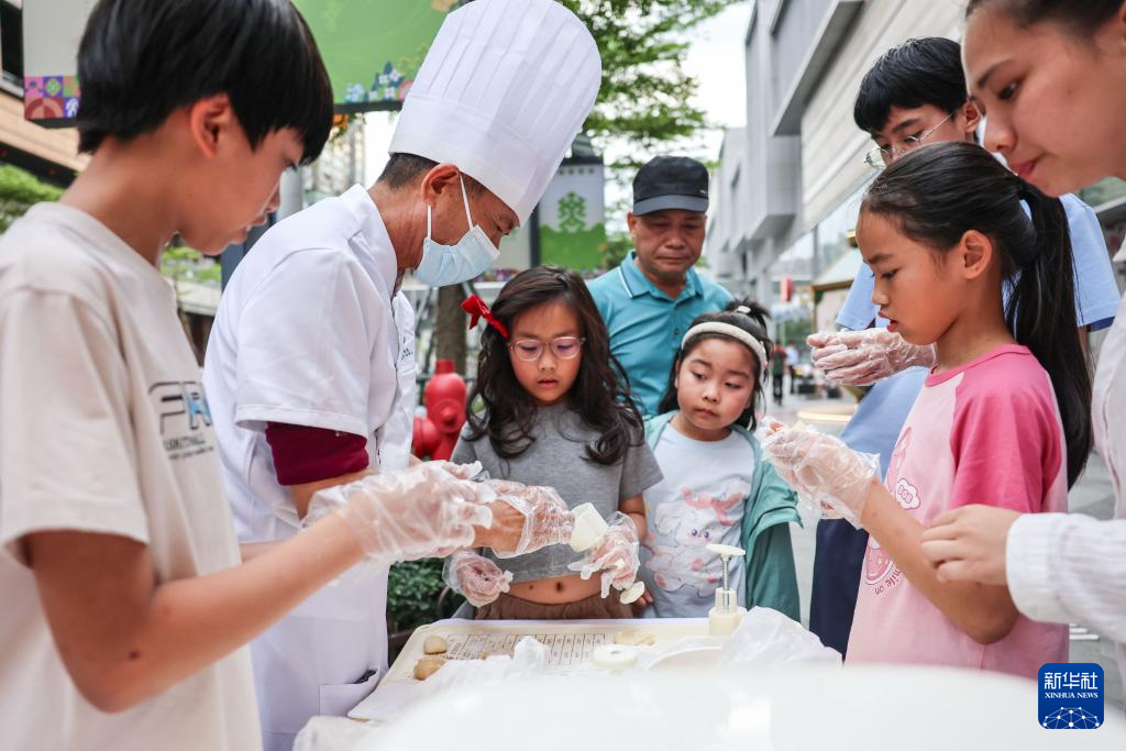 3月21日,市民在海南海口非遗市集上体验制作琼式月饼。