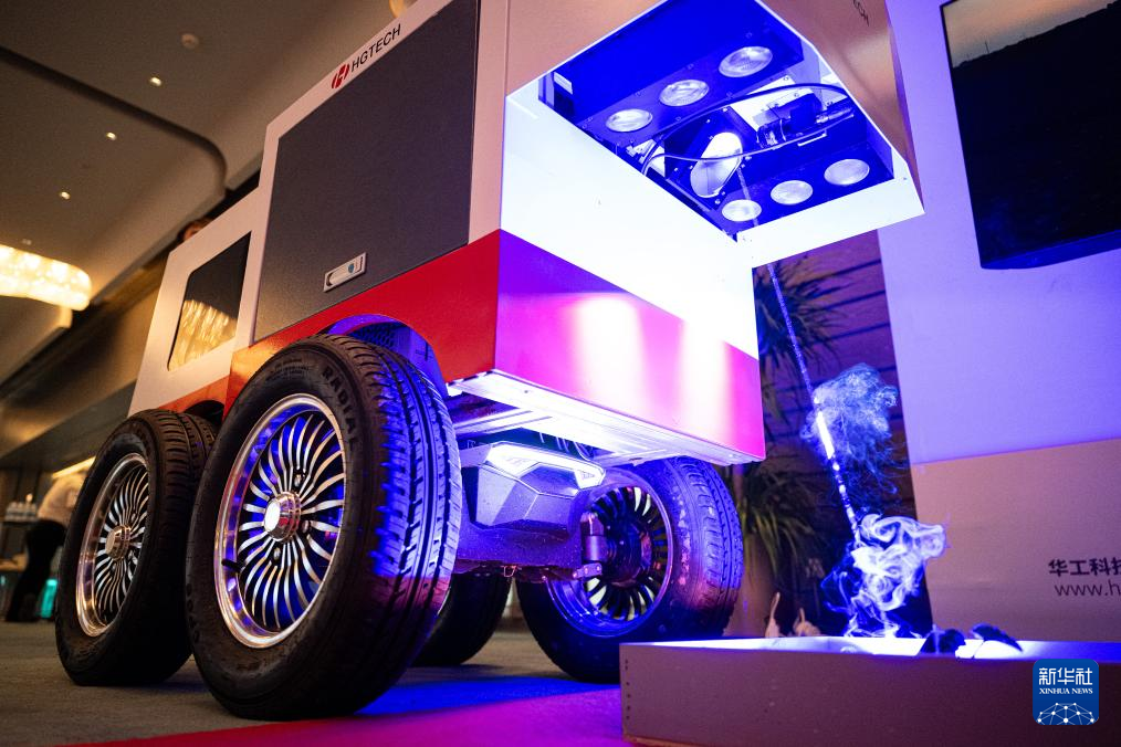 6月28日,全天时智能激光除草机器人在活动现场演示激光除草。