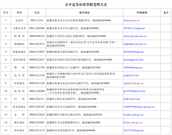 此外,为充分发挥社会监督作用,推动公平竞争审查制度深入实施,切实保障各类经营者依法平等使用生产要素、公平参与市场竞争,自治区市场监督管理局向社会公布了公平竞争审查举报方式,对违反《公平竞争审查条例》规定的政策措施,任何单位和个人可以向市场监督管理部门举报。