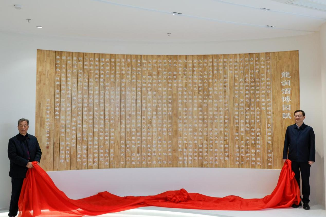 仪式现场,作家、文艺评论家何开四创作的《酒博园赋》揭牌。赋文中,笔墨里凝练着“敬天爱人、守正创新”,字句中承载着“传艺育人、匠心报国”。师生们在墨香与酒香的交融中,感受文字的雅致之美,读懂“文化赋能产业、产业传承文化”的深层意义。