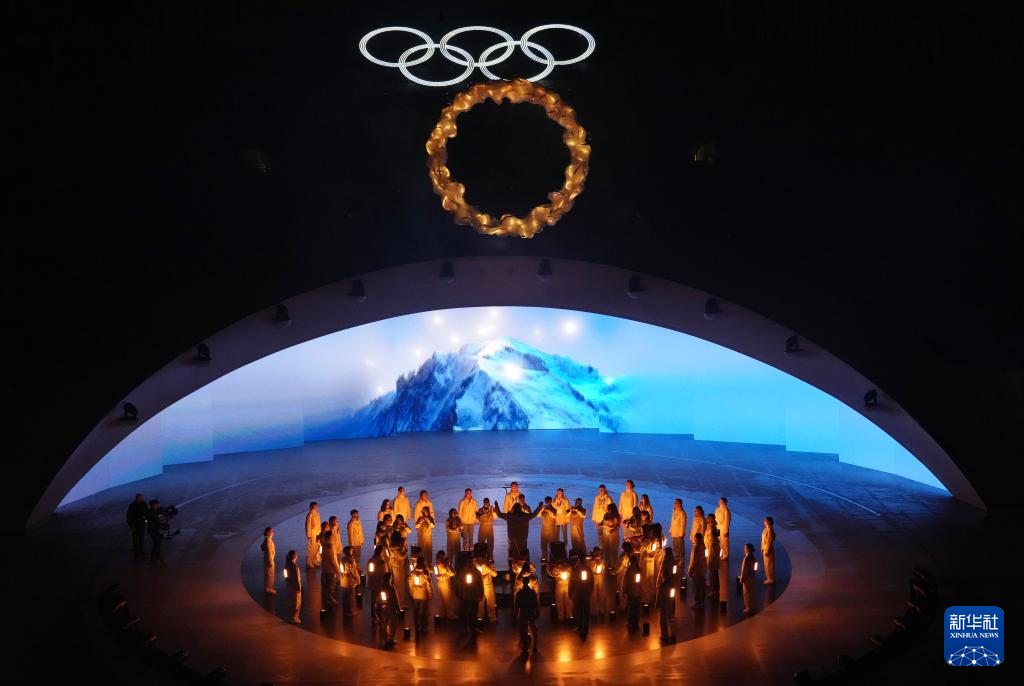 这是2月22日在闭幕式上拍摄的奥林匹克会旗交接仪式。