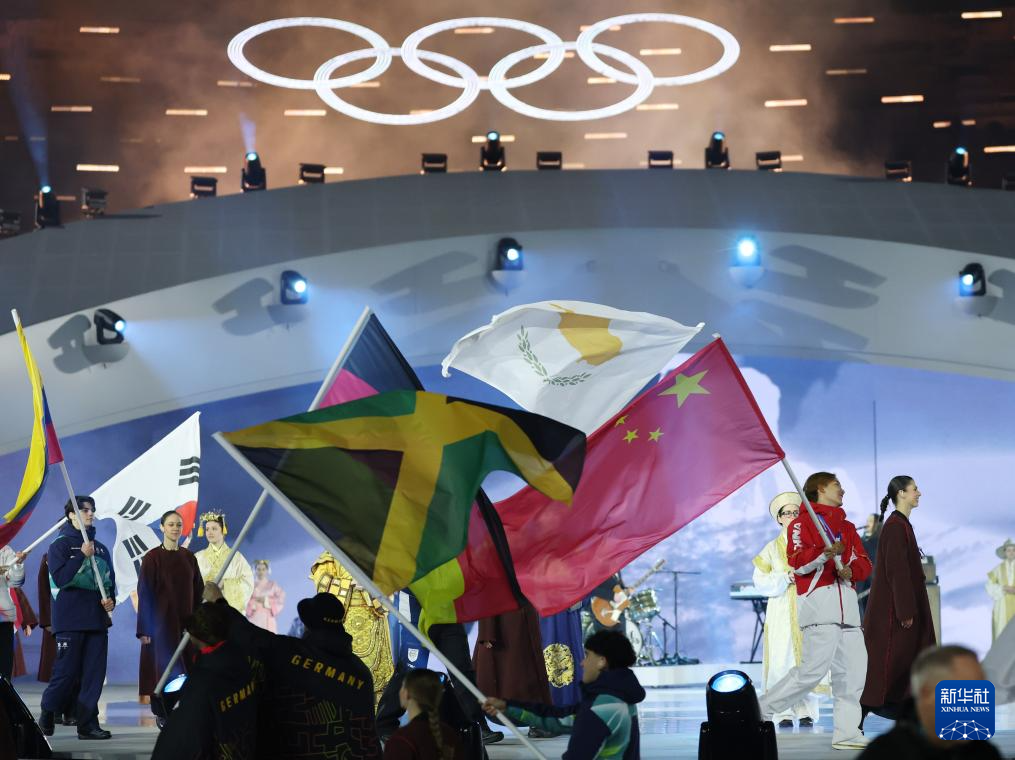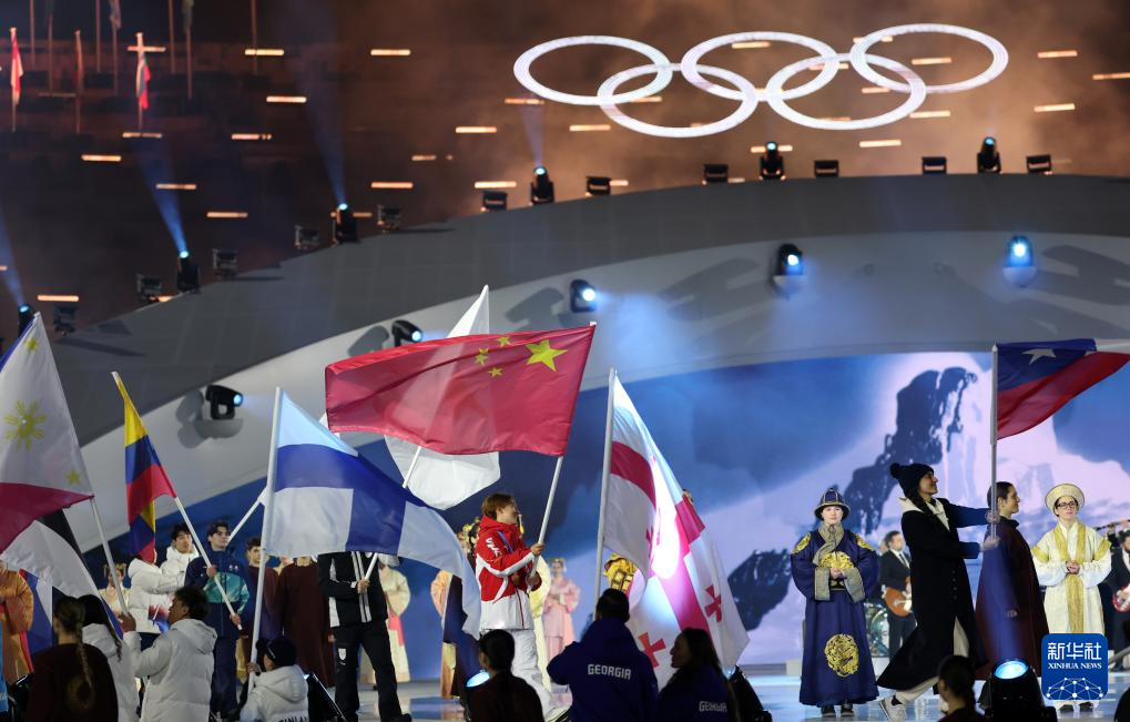 2月22日,中国体育代表团旗手苏翊鸣在闭幕式上入场。