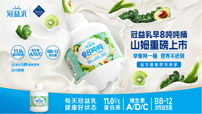 在会员店和仓储超市赛道,蒙牛有针对性地推出“定制化”新品,主打“超性价比”。尤其是,“冠益乳早8吨吨桶”在山姆超市一经上市便成爆款“断货王”,“特仑苏200ml大师限定装”新品联合华润、沃尔玛等系统举办新品发布会及快闪秀引爆声量,产品月销售突破1亿元。