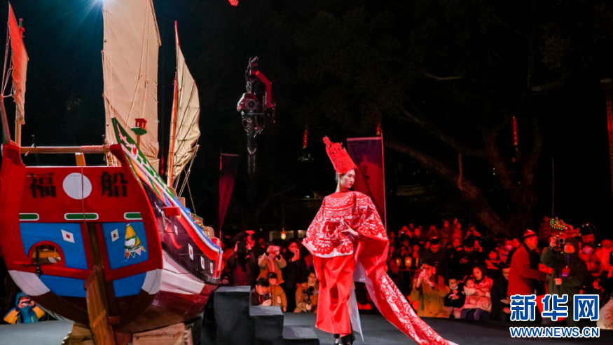 新华网福州2月4日电(刘默涵)2月3日(正月初六)晚,泉州府文庙前广场热闹非凡,一场主题为“穿越宋元奇妙游”的世遗泉州非遗时尚秀,为现场观众带来一场穿越古今的文化盛宴。