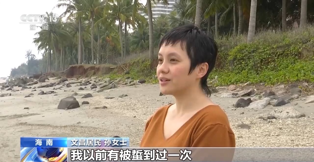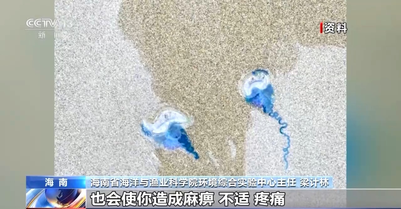 文昌居民 孙女士:我以前有被蜇到过一次,那个是普通水母,就像被一群蜜蜂在你腿上扎,好痛。因为僧帽水母长得很漂亮,蓝色的又有气囊,小孩可能会用手想要去按,蜇一下是很疼很疼的。
