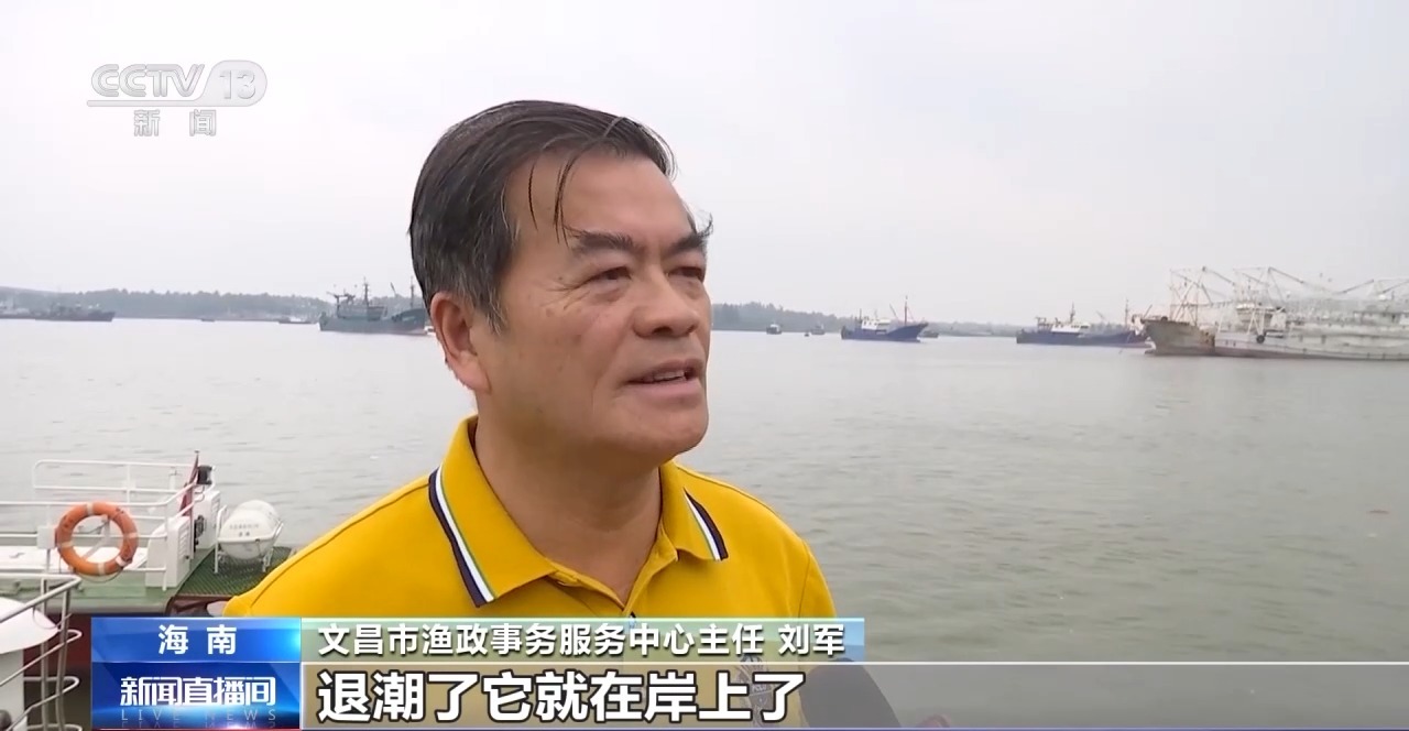 文昌市渔政事务服务中心主任 刘军:僧帽水母往近水游,退潮了它就在岸上了,涨潮了它又活起来了,这段季节到三月份都陆陆续续有水母出现。
