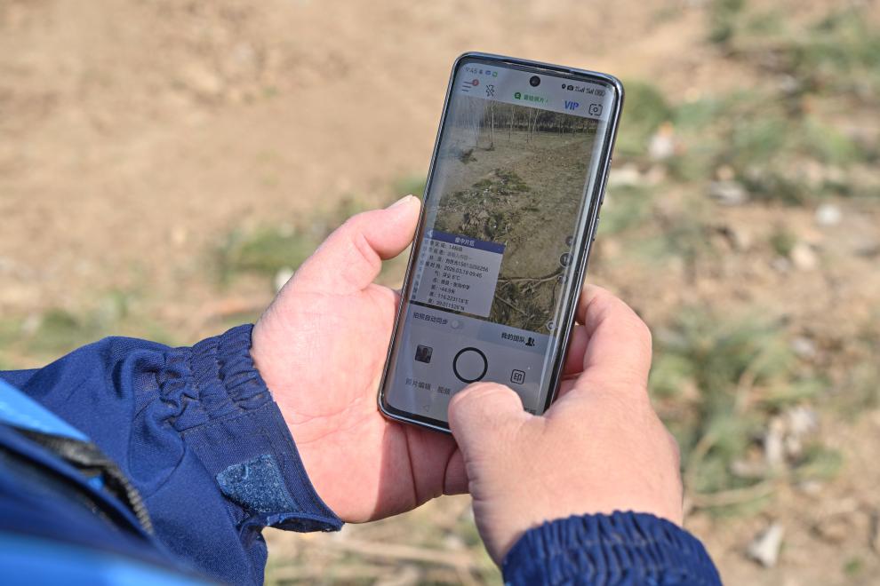 3月19日,刘世光展示手机里的护林巡查记录。
