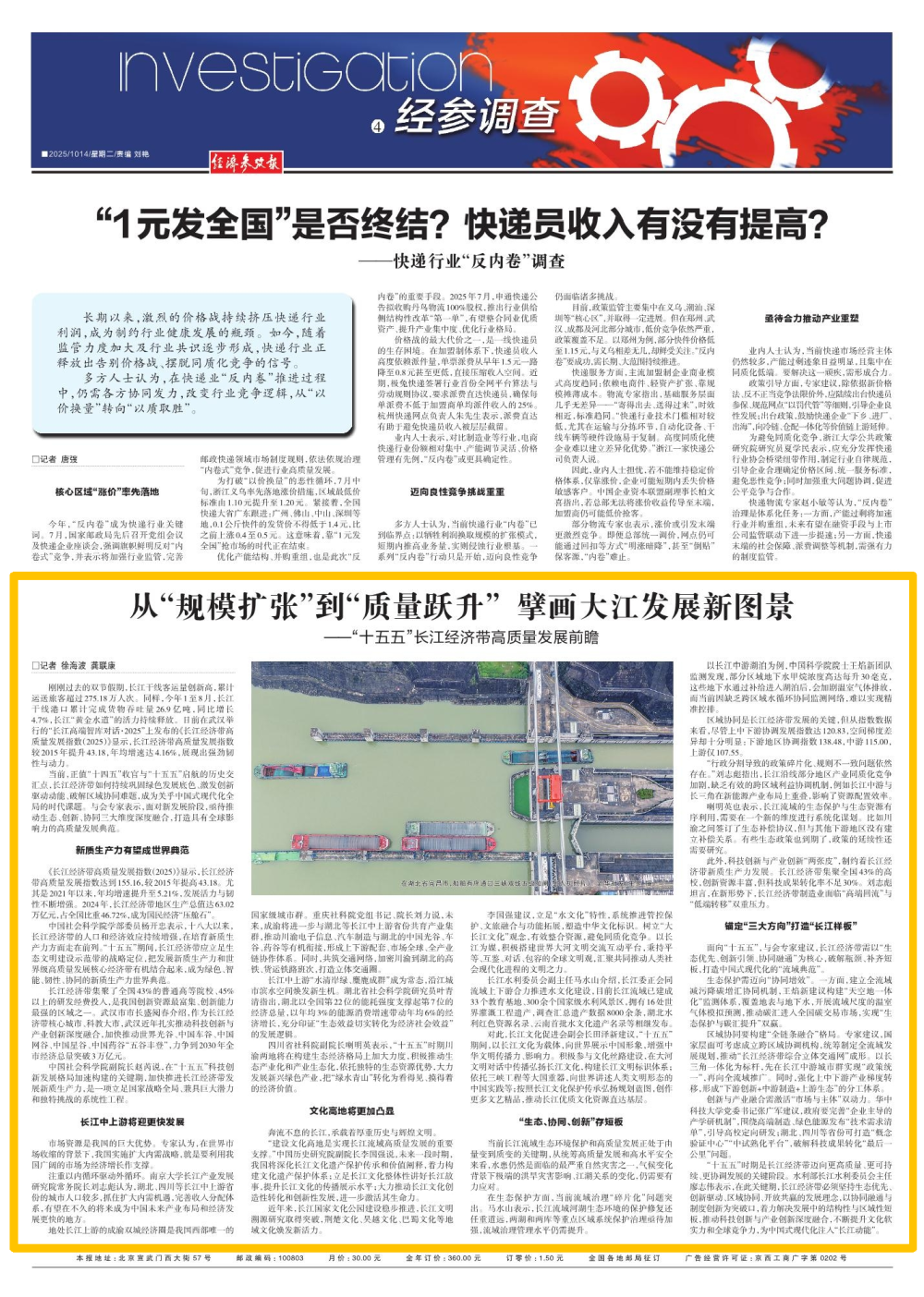中国社会科学院学部委员杨开忠表示,十八大以来,长江经济带的人口和经济效应持续增强,在培育新质生产力方面走在前列。“十五五”期间,长江经济带应立足生态文明建设示范带的战略定位,把发展新质生产力和世界级高质量发展核心经济带有机结合起来,成为绿色、智能、韧性、协同的新质生产力世界典范。