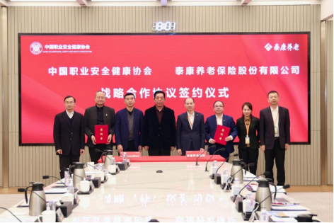 2月9日,中国职业安全健康协会与泰康养老保险股份有限公司(以下简称“泰康养老”)战略合作协议签约仪式在北京举行。中国职业安全健康协会党委书记、理事长王德学出席会议并讲话。协会党委委员、副理事长李德清,党委委员、副理事长兼秘书长毕强,副理事长吴宗之出席会议。泰康养老党委书记、总裁薛振斌,副首席运营官谢爱国及相关部门负责人出席会议。会议由泰康养老健康服务部负责人王雪峰主持。
