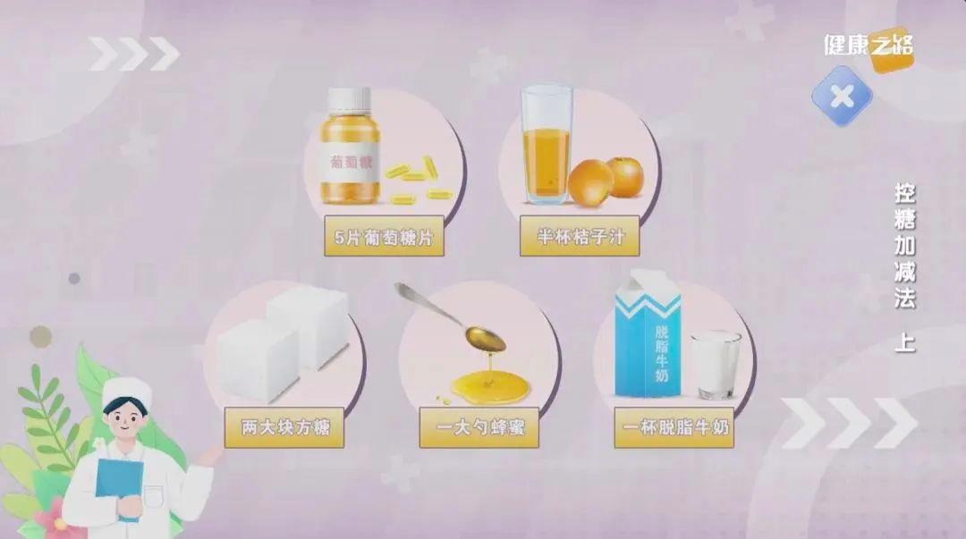 当出现低血糖反应时,先及时检测血糖,吃15-20克葡萄糖或其他无脂碳水化合物;等15分钟,再吃15-20克葡萄糖或其他无脂碳水化合物;如血糖值还没达到正常水平,再吃15-20克碳水化合物后,等15分钟检测血糖。