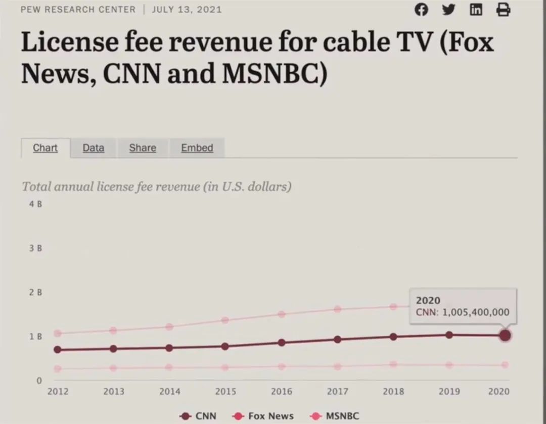 皮尤研究显示,2020年CNN许可营收占其总收入约60%